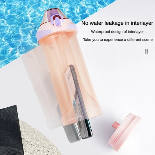 Botella de Agua Portátil de 480ML con Compartimento Secreto y Bolsillo para Teléfono